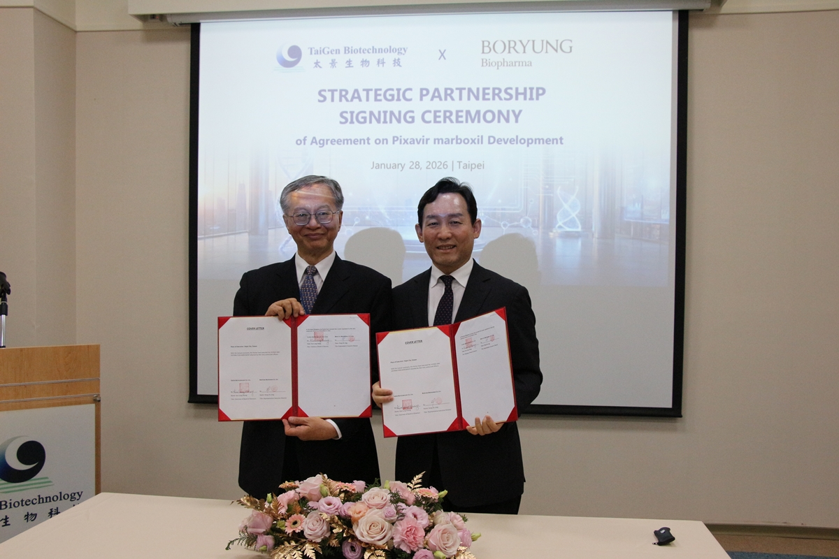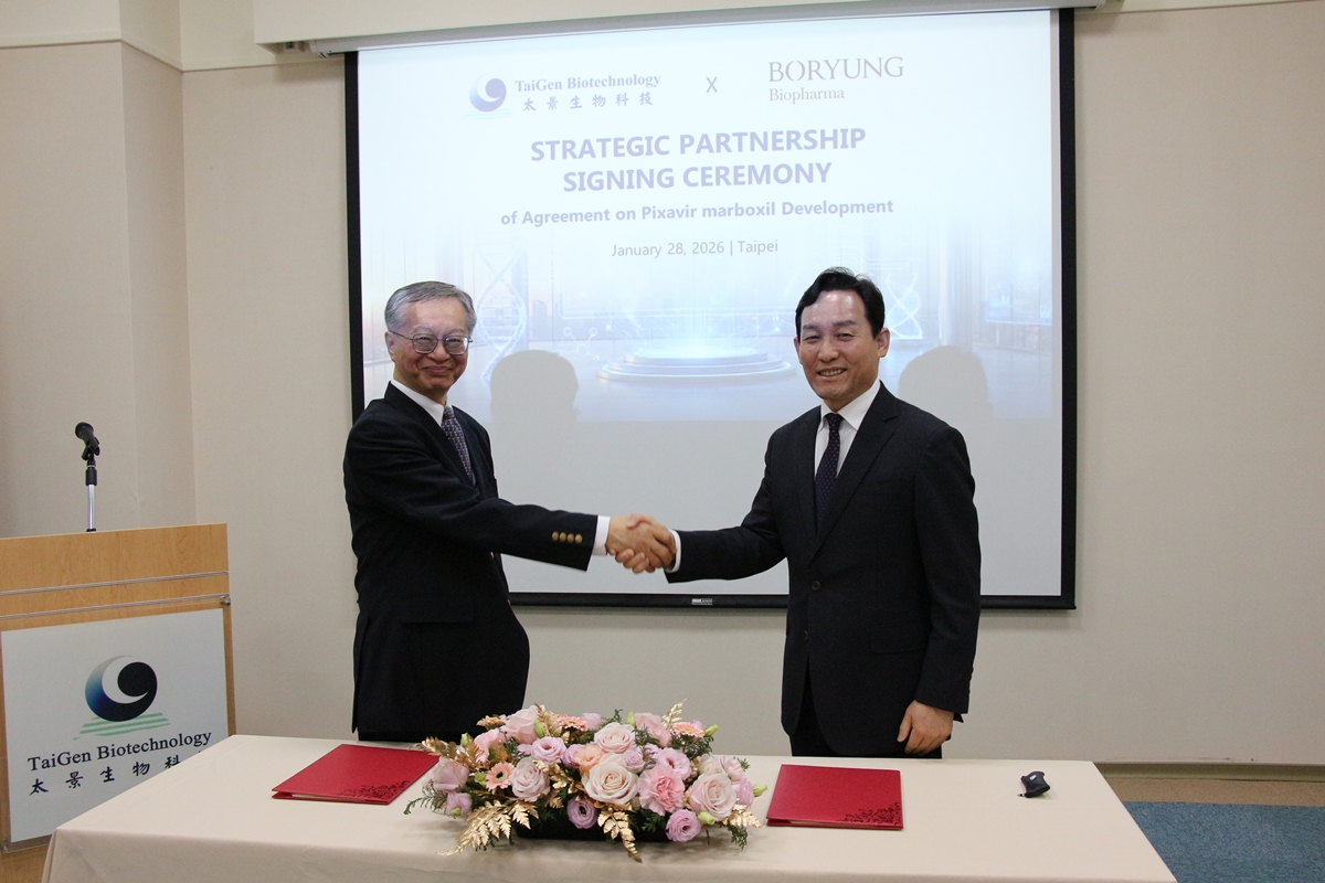 TAIPEI, Taiwan, January 28, 2026-TaiGen Biotechnology and South Korea-based Boryung Biopharma held a formal signing ceremony in Taipei yesterday (January 28) for the licensing agreement of the novel influenza antiviral drug, TG-1000 (Pixavir).